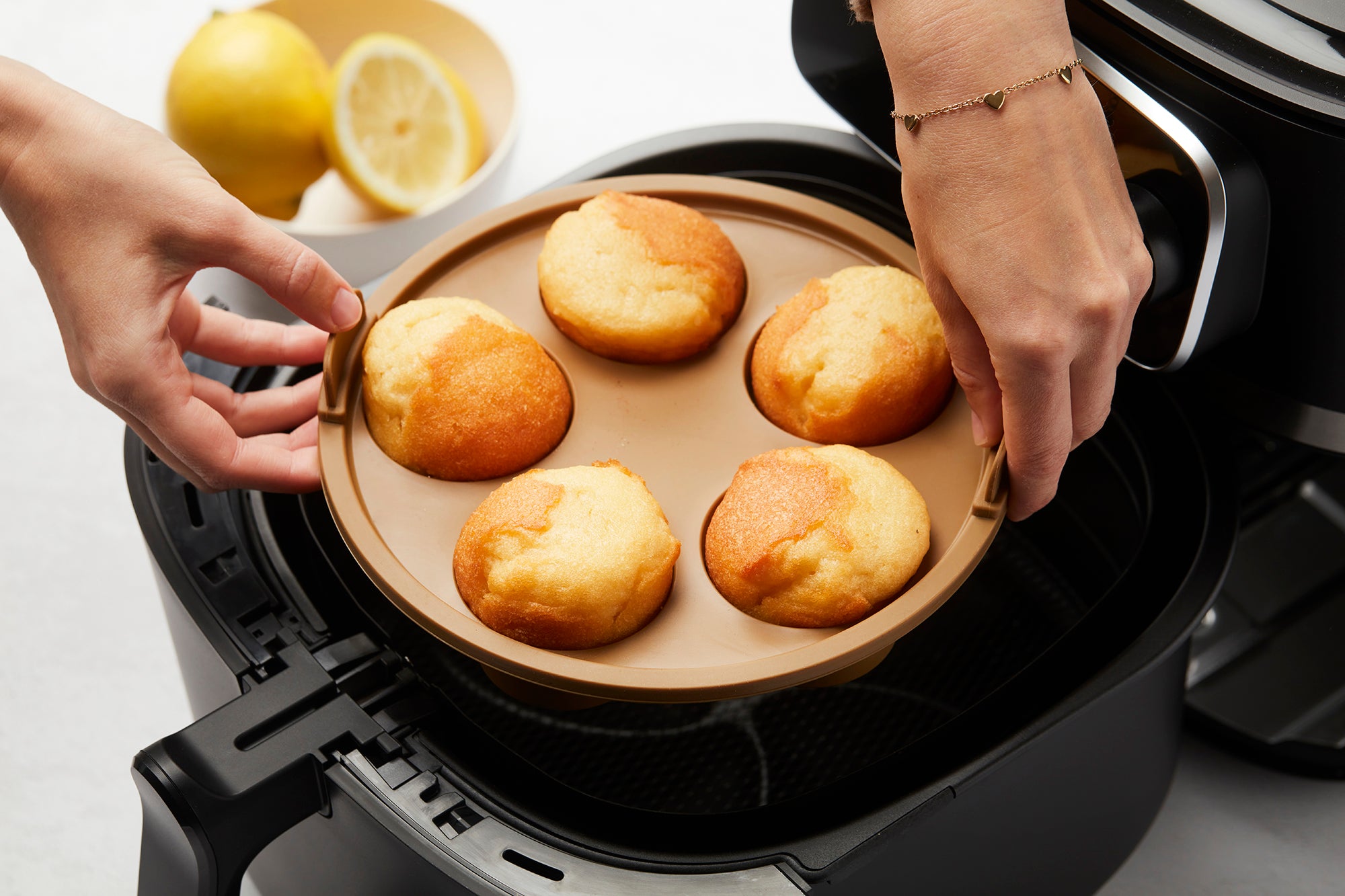 Bake soft, fluffy vanilla muffins in just 15 minutes in your airfryer with the Point-Virgule silicone muffin mold (with handles). Easy...