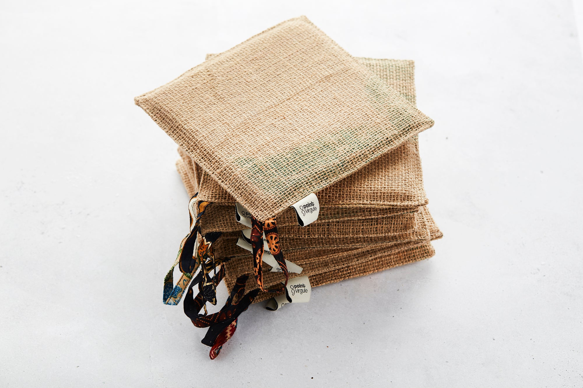 Bring sustainability and style into your kitchen with Point-Virgule’s IWAS pot holders. Each piece is handmade from repurposed textiles, such as old coffee bean bags, giving new life to materials that would otherwise be discarded. The result? Unique, one-of-a-kind pot holders that combine functionality, durability, and personality.