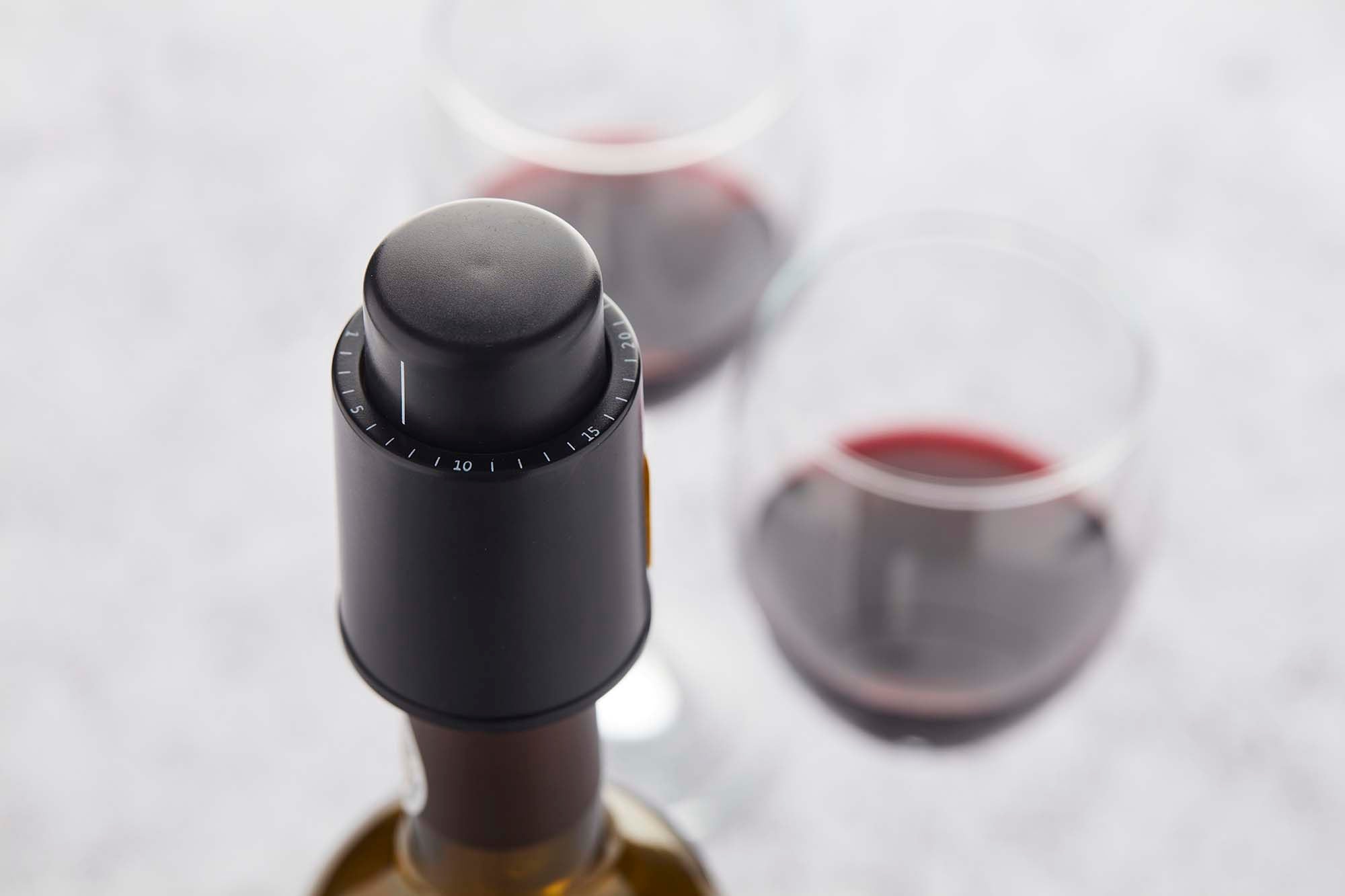 - 5-piece set: wine thermometer, waiter's corkscrew, vacuum pump, and 2 stoppers